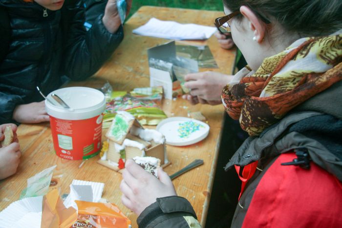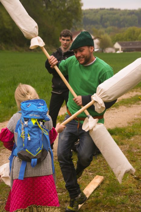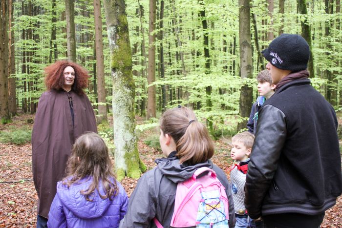 Anschließend ging es beim Sagalandspiel im angrenzenden Wald darum, Waldwichtel einzufangen und sich deren mitgeführte Märchensymbole zu merken, um beim König des Spiels wichtige Punktkarten zu erhalten. Das entpuppte sich als durchaus schwierig, da die Wichtel im hohen Gestrüpp mit grünen Wichtelmützen kaum zu erkennen waren. Als Gewinner des Spiels erhielt eine Kleingruppe eine geheimnisvolle Karte, die zu einem späteren Zeitpunkt noch wichtig werden sollte.