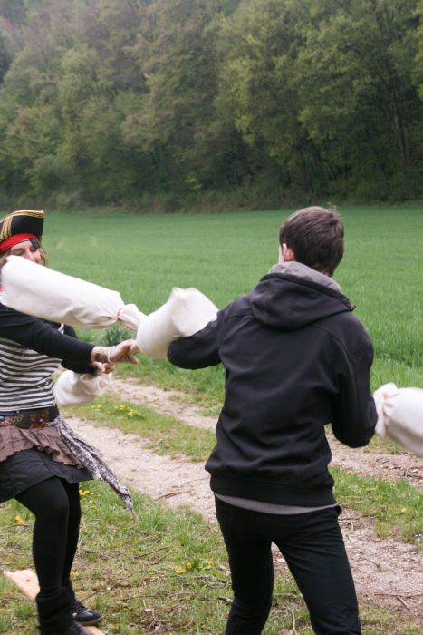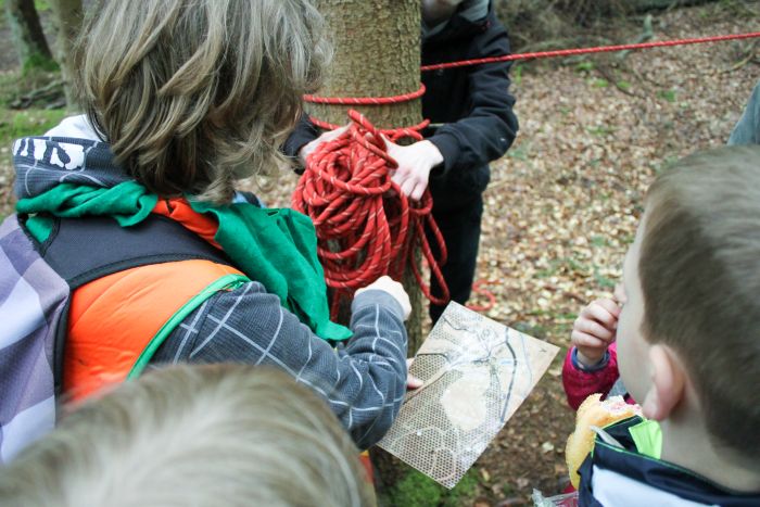 Die am Vortag gewonnene Karte zeigte den Kindern und Jugendlichen des Stammes am folgenden Tag, den Weg für einen Postenlauf. In Kleingruppen eingeteilt ging es darum in der näheren Umgebung Armbrust zu schießen mit Robin Hood, bei Rumpelstilzchen Märchenzitate zuzuordnen, einer Hexe ein besonders ansehnliches und kreatives Lebkuchenhaus zu bauen, Captain Hook und Peter Pan von der Holzplanke zu stoßen oder Rapunzel aus ihrem Turm zu befreien. Bei diesem Spiel erhielten die Gruppen einzelne Holzelemente, die später gemeinsam zusammen gesetzt wurden und ebenfalls dazu beitrugen, den Fluch zu brechen.